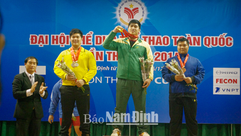 N gày 14-12, tại Trung tâm Điện ảnh Sinh viên (TP Nam Định), diễn ra ngày thi đấu cuối cùng môn Cử tạ với nội dung chung kết các hạng cân 105kg và trên 105kg nam.