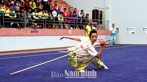 N gày 14-12-2014, tại Nhà văn hóa huyện Giao Thủy tiếp tục diễn ra các trận đấu môn Wushu. Ở nội dung Taolu: Nam côn nam: VĐV Cao Khắc Đạt (Công an nhân dân) đoạt HCV, VĐV Nguyễn Quốc Hoàng Nam (TP Hồ Chí Minh) đoạt HCB, VĐV Nguyễn Đình Duy (Bình Phước) đoạt HCĐ; Kiếm Thuật nam: VĐV Nguyễn Huy Thành (TP Hồ Chí Minh) đoạt HCV, VĐV Nguyễn Khánh (Hà Nội) đoạt HCB, VĐV Nguyễn Thanh Tân (TP Hồ Chí Minh) đoạt HCĐ. Thái cực kiếm nữ: VĐV Trần Thị Khánh Ly (Quảng Ninh) đoạt HCV, VĐV Trần Lê Thanh Trúc (TP Hồ Chí Minh) đoạt HCB, VĐV Đào Thị Quỳnh Nga (Phú Thọ) đoạt HCĐ; Nam đao nữ: VĐV Trần Phạm Tố Tâm (TP Hồ Chí Minh) đoạt HCV, VĐV Nguyễn Thùy Linh (Hà Nội) đoạt HCB, VĐV Lâm Nhật Quỳnh (Hà Nội) đoạt HCĐ; Thương thuật nữ: VĐV Dương Thúy Vi (Hà Nội) đoạt HCV, VĐV Phạm Thị Thịnh (Thái Bình) đoạt HCB, VĐV Phan Thị Ngọc Anh (Quân đội) đoạt HCĐ.