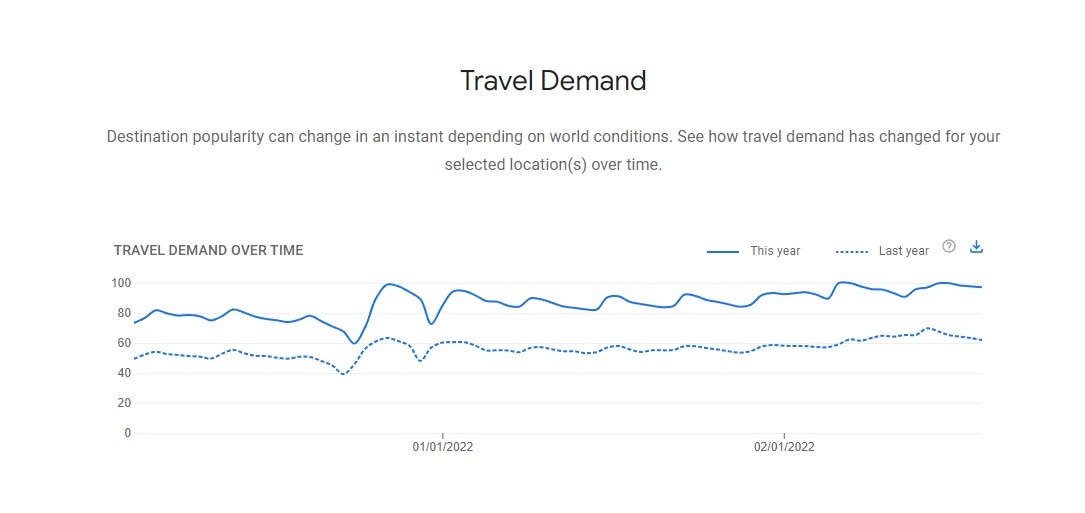 Động lực chính mang lại tốc độ tăng trưởng đặc biệt ấn tượng của Việt Nam chính là nhu cầu tìm kiếm về hàng không. Từ đầu năm 2022 đến nay, lượng tìm kiếm quốc tế về hàng không đến Việt Nam đang tăng rất nhanh, vào thời điểm đầu tháng 1/2022, tăng khoảng 247% so với cùng kỳ, đến đầu tháng 2/2022 tăng 425% và đến giữa tháng 2/2022 tăng vọt tới 654% so với cùng kỳ năm 2021.