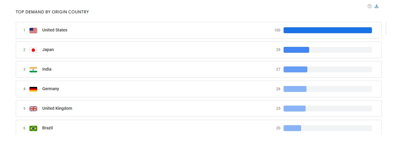 Ngoài ra, Google Destination Insights cũng chỉ ra du khách đến từ các quốc gia như Mỹ, Nhật Bản, Ấn Độ, Đức, Anh, Brazil... có lượng tìm kiếm thông tin du lịch về Việt Nam nhiều nhất.