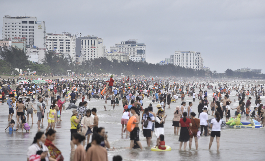 Hàng nghìn du khách tắm biển Sầm Sơn ngày đầu kỳ nghỉ lễ 30/4/2023. Ảnh: Lê Hoàng