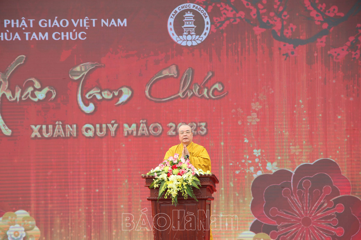 Hòa thượng Thích Thanh Nhiễu, Phó Chủ tịch Thường trực Hội đồng Trị sự Giáo hội Phật giáo Việt Nam, trụ trì chùa Tam Chúc khai mạc Hội Xuân Tam Chúc 2023.