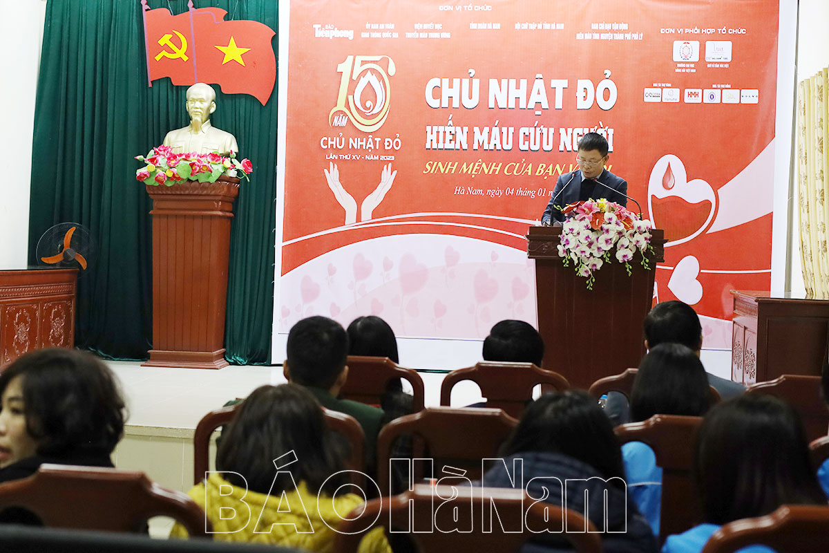 Sáng 4/1, Tỉnh đoàn, Hội Chữ thập đỏ tỉnh phối hợp với Báo Tiền phong, Ban chỉ đạo vận động hiến máu tình nguyện TP Phủ Lý tổ chức khai mạc chương trình Chủ nhật đỏ lần thứ XV, năm 2023 với chủ đề “Hiến máu cứu người – Sinh mệnh của bạn và tôi”. Đây là chương trình hiến máu tình nguyện được tổ chức hàng năm với sự tham gia của 40 đến 45 tỉnh, thành trên cả nước. Các đồng chí Thường trực Thành ủy, lãnh đạo UBND thành phố, lãnh đạo Tỉnh đoàn, Hội Chữ thập đỏ tỉnh đã về dự, động viên ngày hội.