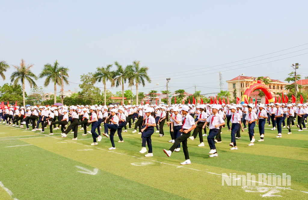 Học sinh đồng diễn Vovinam tại lễ khai mạc Đại hội.