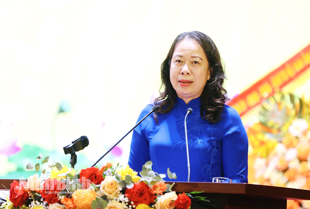 Thay mặt Tỉnh ủy, HĐND, UBND tỉnh, đồng chí Trương Quốc Huy, Bí thư Tỉnh uỷ, Trưởng Đoàn ĐBQH tỉnh trân trọng cảm ơn và xin nghiêm túc tiếp thu, lĩnh hội đầy đủ ý kiến phát biểu chỉ đạo của đồng chí Phó Chủ tịch nước Võ Thị Ánh Xuân để tiếp tục lãnh đạo, chỉ đạo các cấp, các ngành của tỉnh thực hiện hiệu quả các phong trào thi đua yêu nước trong thời gian tới. Đồng thời mong muốn đồng chí Phó Chủ tịch nước tiếp tục quan tâm, lãnh đạo, chỉ đạo, tạo điều kiện để tỉnh Ninh Bình hoàn thành xuất sắc những mục tiêu, phương hướng mà Đại hội đã đề ra.