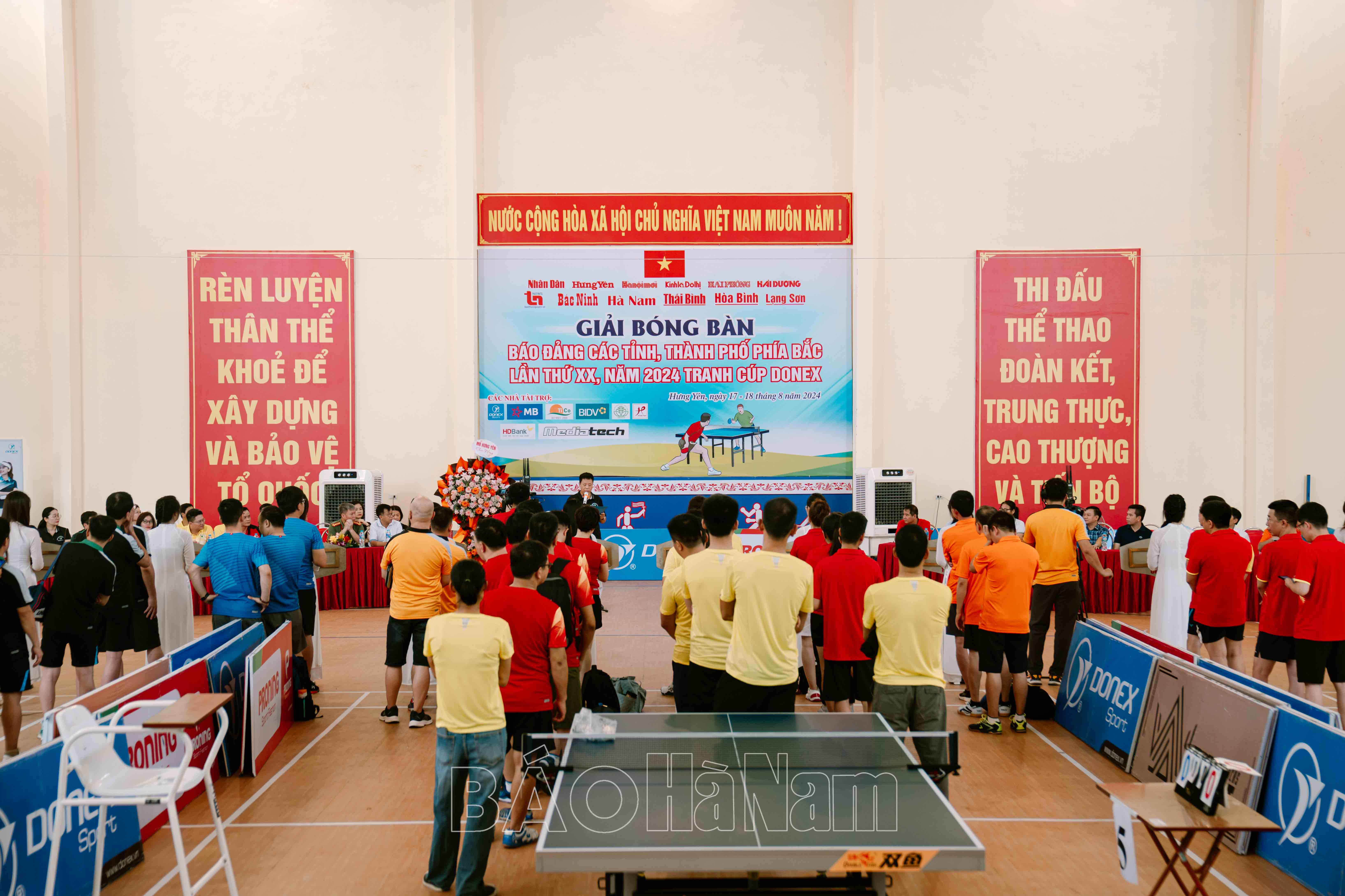 Các đại biểu dự lễ khai mạc Giải bóng bàn Báo Đảng các tỉnh, thành phố phía Bắc lần thứ XX.Trận thi đấu giữa các VĐV của Báo Hà Nam và Báo Bắc Ninh.Các vận động viên thi đấu nội dung đơn nữ dưới 45 tuổi tại giải.