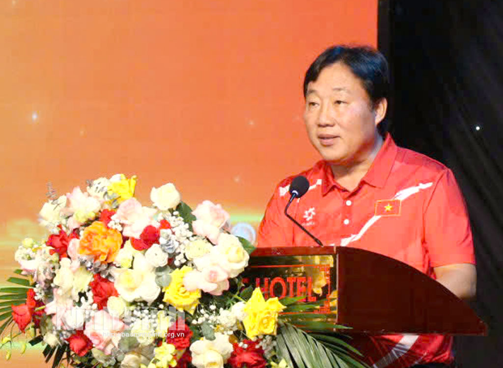 Đại diện Liên đoàn Quần vợt Việt Nam phát biểu tại lễ khai mạc.