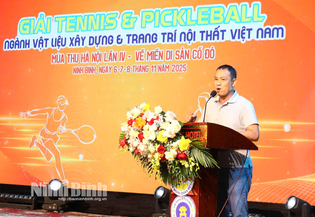 Tối 7/11, tại Khách sạn Hoàng Sơn Peace (phường Hoa Lư, tỉnh Ninh Bình), Câu lạc bộ Quần vợt ngành vật liệu xây dựng (VLXD) & trang trí nội thất (TTNT) Việt Nam phối hợp Liên đoàn Quần vợt Việt Nam tổ chức khai mạc Giải Quần vợt & Pickleball lần thứ IV năm 2025.