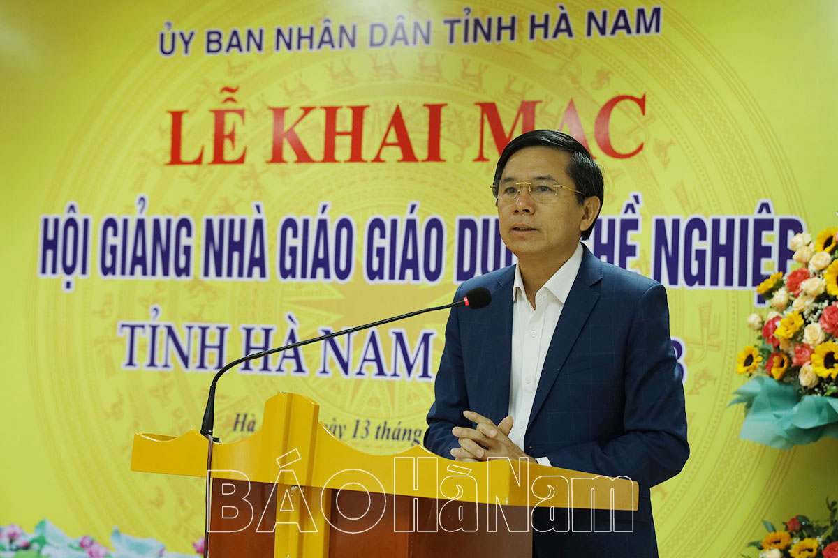 Sáng 13/11, tại Trường Cao đẳng nghề Hà Nam, UBND tỉnh tổ chức Lễ khai mạc Hội giảng Nhà giáo giáo dục nghề nghiệp tỉnh năm 2023. Đồng chí Trần Xuân Dưỡng, TUV, Phó Chủ tịch UBND tỉnh đã đến dự. Dự lễ khai mạc có lãnh đạo Sở Lao động - Thương binh và Xã hội, Văn phòng UBND tỉnh, các cơ sở giáo dục nghề nghiệp trong tỉnh…