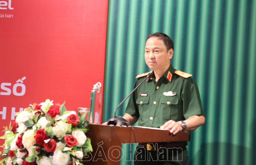 Thiếu Tướng Nguyễn Đình Chiến, Phó Tổng giám đốc Tập đoàn công nghiệp - viễn thông Quân đội phát biểu tại hội nghị.