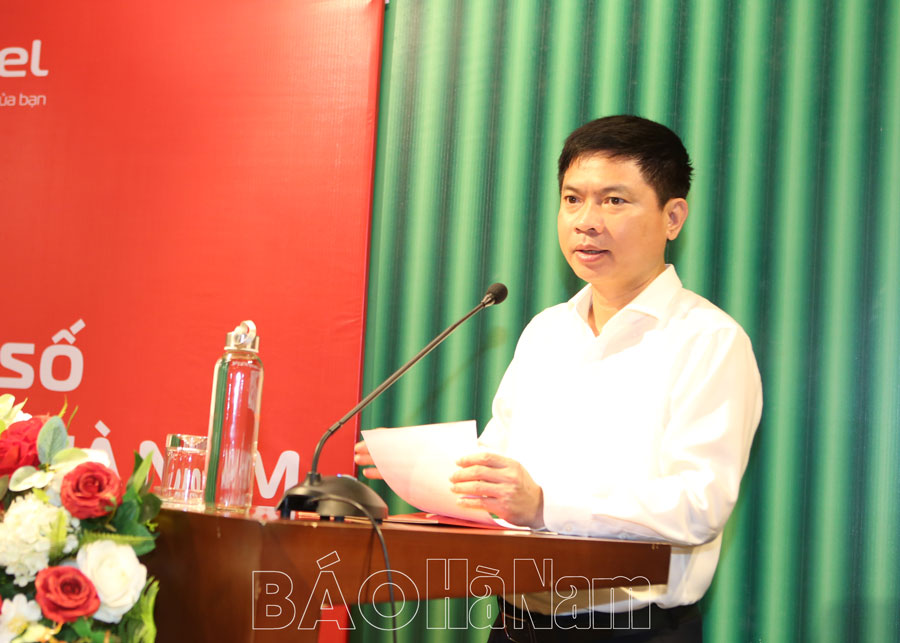 Phát biểu chỉ đạo tại Hội nghị tập huấn, đồng chí Chủ tịch UBND tỉnh Trương Quốc Huy thay mặt lãnh đạo tỉnh Hà Nam, trân trọng cảm ơn Tập đoàn Công nghiệp - Viễn thông quân đội, Tổng công ty Giải pháp doanh nghiệp Viettel, Học viện Viettel, Viettel Hà Nam và các đơn vị của Tập đoàn đã quan tâm, phối hợp chặt chẽ với UBND tỉnh Hà Nam tổ chức “Hội nghị tập huấn về chuyển đổi số cho cán bộ chủ chốt tỉnh Hà Nam”. Điều này, hết sức có ý nghĩa trong giai đoạn hiện nay, khi Hà Nam đang cùng với các tỉnh khác trong cả nước thực hiện mục tiêu Chuyển đổi số Quốc gia theo chỉ đạo của Trung ương, của Chính phủ, Thủ tướng Chính phủ. Hiện Hà Nam đã hoàn thành 100% công dân đủ điều kiện cấp căn cước công dân gắn chip. Tỷ lệ dân số trưởng thành có tài khoản định danh điện tử đạt trên 94%. Là tỉnh dẫn đầu cả nước về thực hiện Đề án 06; bước đầu xây dựng, hình thành các nền tảng số, cơ sở dữ liệu dùng chung; kết nối, chia sẻ dữ liệu với hệ thống thông tin chuyên ngành của tỉnh.