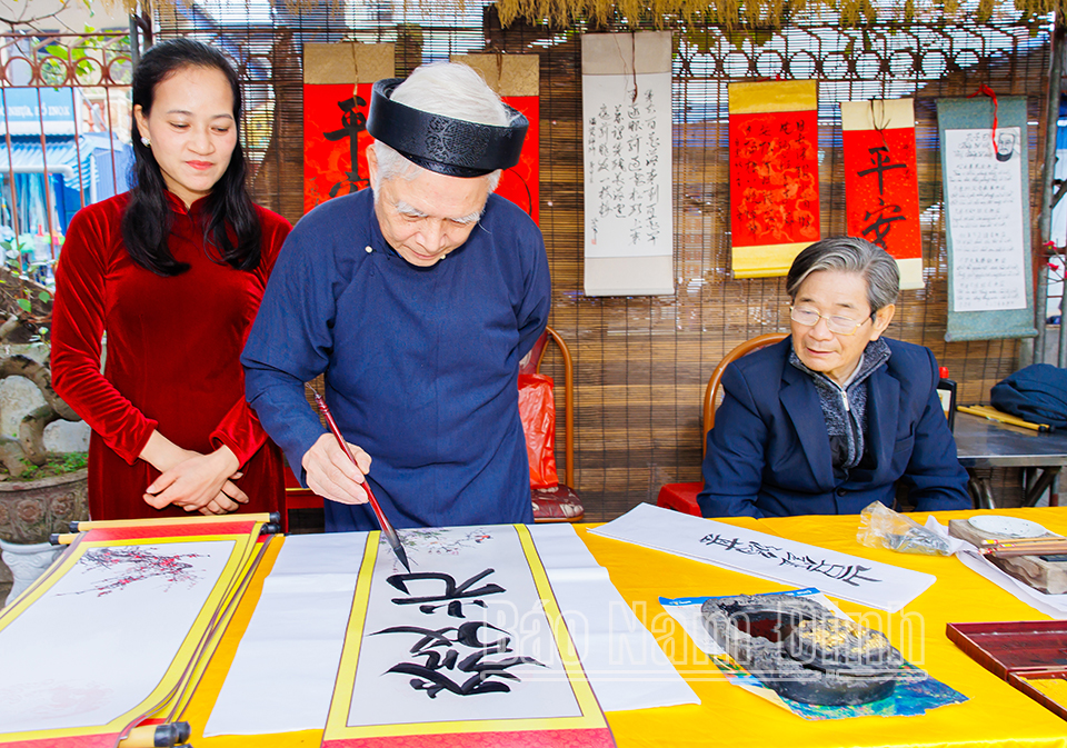 | Cho chữ thư pháp tại lễ hội Đền Đồng Phù. |