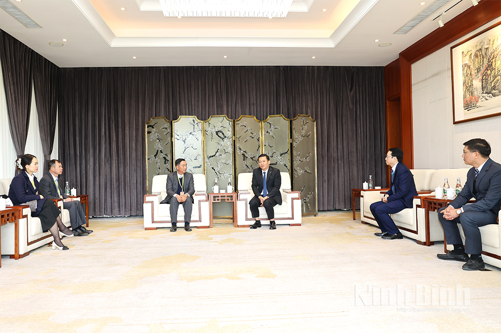 Tại cuộc gặp, đồng chí Phó Chủ tịch UBND tỉnh đã giới thiệu về không gian phát triển mới của tỉnh; bày tỏ mong muốn Tổng Lãnh sự quán tiếp tục quan tâm, là cầu nối hỗ trợ thúc đẩy quan hệ hợp tác giữa tỉnh Ninh Bình với các đối tác Trung Quốc, đặc biệt trong việc thu hút các nhà đầu tư chiến lược về công nghệ cao và du lịch.