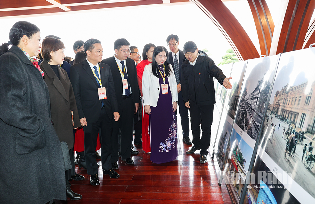Đồng chí Phó Chủ tịch UBND tỉnh Ninh Bình Nguyễn Cao Sơn và các đại biểu tham quan triển lãm ảnh tại Lễ Khai mạc.
