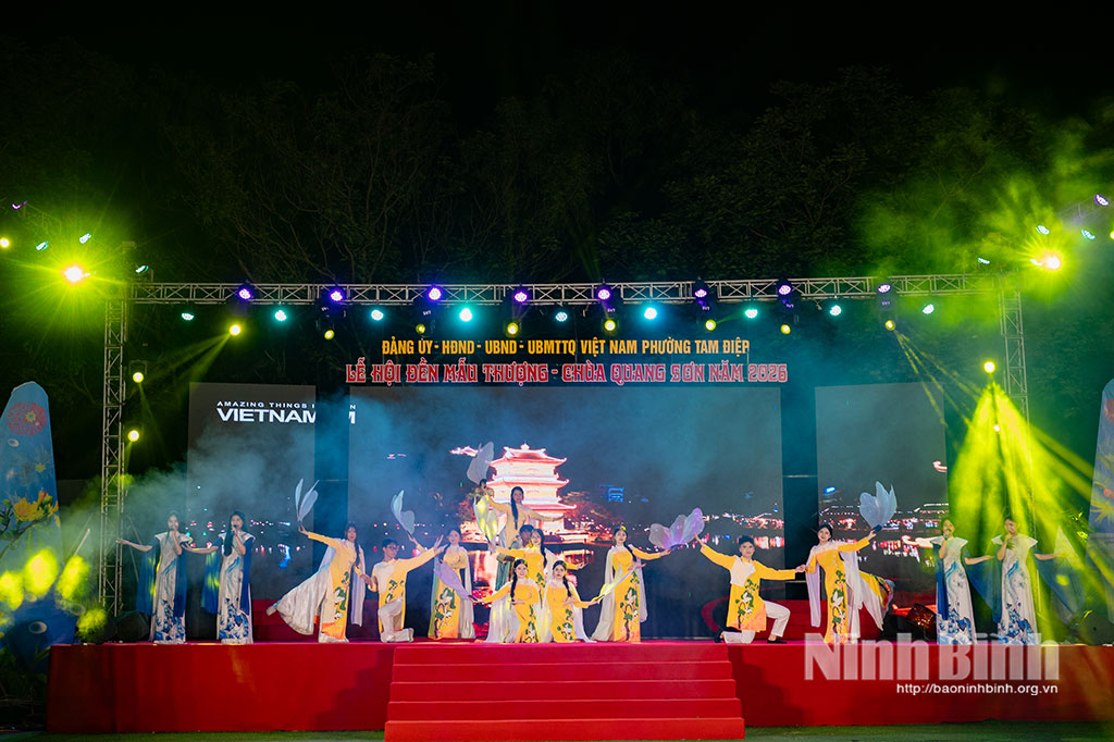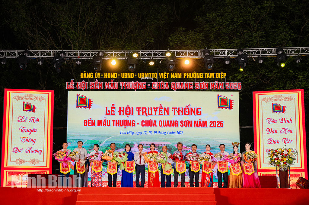Tối 18/4 tại Trung tâm Thể thao phường Tam Điệp, Đảng ủy, HĐND, UBND, Ủy ban MTTQ Việt Nam phường Tam Điệp tổ chức Khai mạc Lễ hội truyền thống Đền Mẫu Thượng - Chùa Quang Sơn 2026.