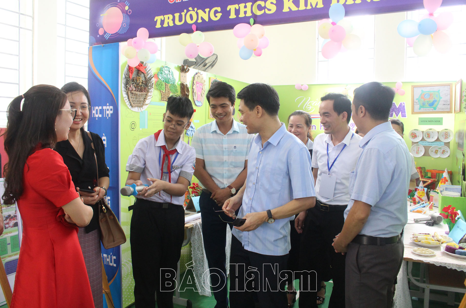 Các đại biểu tham quan gian trưng bày sản phẩm STEM của Trường THCS Kim Bình.