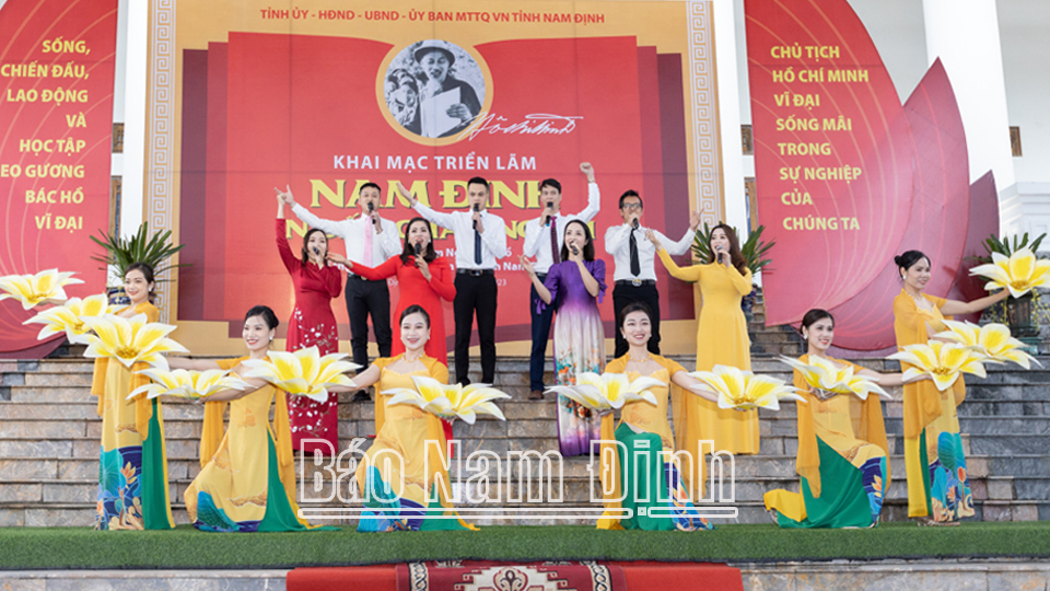 | Tiết mục văn nghệ tại triển lãm "Nam Định in dấu chân Người". |