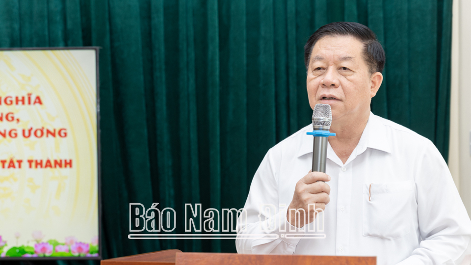 | Đồng chí Trưởng Ban Tuyên giáo Trung ương Nguyễn Trọng Nghĩa phát biểu tại trường Tiểu học Nguyễn Tất Thành (thành phố Nam Định). |