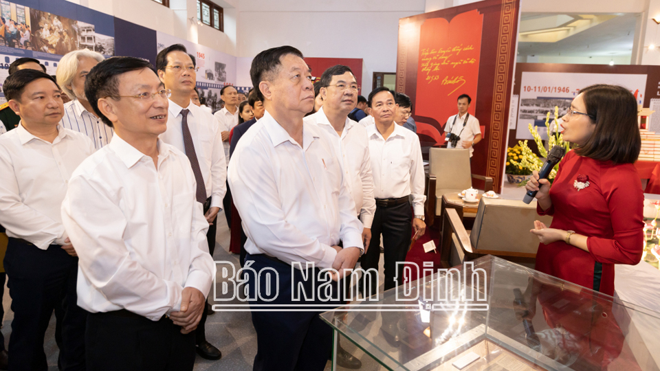 Phát biểu khai mạc Triển lãm, đồng chí Phạm Đình Nghị, Phó Bí thư Tỉnh ủy, Chủ tịch UBND tỉnh nêu rõ: Là địa phương có bề dày lịch sử, văn hóa và truyền thống cách mạng, quê hương Nam Định vinh dự, tự hào được 5 lần đón Bác Hồ về thăm và làm việc vào các năm 1946, 1957, 1958, 1959, 1963. Những lần Bác về thăm đã để lại nhiều kỷ niệm sâu sắc với nhiều bài nói, bài viết, những trang bút tích sâu nặng tình Người, thể hiện sự quan tâm của Bác với Đảng bộ, quân và dân tỉnh nhà. Những lời căn dặn và di huấn của Người qua các lần về thăm là những định hướng chiến lược cho sự nghiệp phát triển kinh tế - xã hội của tỉnh. Hơn 60 năm qua, làm theo lời Bác, tỉnh Nam Định đã đạt được nhiều thành tựu quan trọng; nổi bật trong giai đoạn hiện nay là kết quả xây dựng nông thôn mới với nhiều cách làm sáng tạo và là một trung tâm công nghiệp dệt may của cả nước.