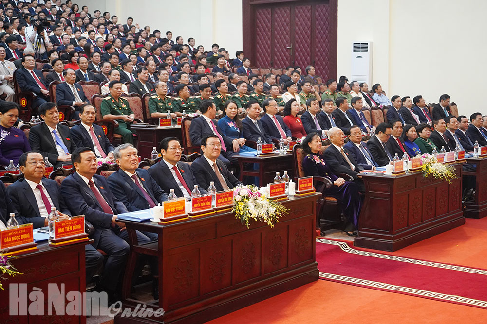 Dự Đại hội có các đồng chí: Trương Tấn Sang, nguyên Ủy viên Bộ Chính trị, nguyên Chủ tịch nước; Nguyễn Văn An, nguyên Ủy viên Bộ Chính trị, nguyên Chủ tịch Quốc hội; Phạm Quang Nghị, nguyên Ủy viên Bộ Chính trị, nguyên Bí thư Thành ủy Hà Nội, nguyên Bí thư Tỉnh ủy Hà Nam; Phan Đình Trạc, Bí thư Trung ương Đảng, Trưởng Ban Nội chính Trung ương; Nguyễn Hòa Bình, Bí thư Trung ương Đảng, Chánh án Tòa án Nhân dân Tối cao; Nguyễn Xuân Thắng, Bí thư Trung ương Đảng, Giám đốc Học viện Chính trị Quốc gia Hồ Chí Minh, Chủ tịch Hội đồng Lý luận Trung ương; các đồng chí Ủy viên Trung ương Đảng: Hoàng Bình Quân, Trưởng Ban Đối ngoại Trung ương; Đào Việt Trung, Chủ nhiệm Văn phòng Chủ tịch nước; Nguyễn Thúy Anh, Chủ nhiệm Ủy ban các vấn đề xã hội của Quốc hội; Hồ Đức Phớc, Tổng Kiểm toán Nhà nước; Mai Tiến Dũng, Bộ trưởng, Chủ nhiệm Văn phòng Chính phủ; Đào Ngọc Dung, Bộ trưởng Bộ Lao động- Thương binh và Xã hội; Trần Hồng Hà, Bộ trưởng Bộ Tài nguyên và Môi trường; Trần Tuấn Anh, Bộ trưởng Bộ Công thương; Lê Thành Long, Bộ trưởng Bộ Tư Pháp; Phùng Xuân Nhạ, Bộ trưởng Bộ Giáo dục và Đào tạo; Nguyễn Mạnh Hùng, Bộ trưởng Bộ Thông tin và Truyền thông; Nguyễn Đình Khang, Chủ tịch Tổng Liên đoàn Lao động Việt Nam; Nguyễn Thanh Bình, Phó Trưởng Ban Thường trực Ban Tổ chức Trung ương; Bùi Thị Minh Hoài, Phó Chủ nhiệm Thường trực Ủy ban Kiểm tra Trung ương; Bùi Thanh Sơn, Thứ trưởng Thường trực Bộ Ngoại giao; Trung tướng Nguyễn Tân Cương, Thứ trưởng Bộ Quốc phòng; Sơn Minh Thắng, Bí thư Đảng ủy Khối Cơ quan Trung ương; đại diện lãnh đạo các Ban, bộ, ngành, MTTQ, các đoàn thể, cơ quan Trung ương; đại diện Đảng ủy Quân khu 3; đại diện một số tỉnh, thành ủy, đảng ủy trực thuộc Trung ương; đại biểu lão thành cách mạng, cán bộ tiền khởi nghĩa, Mẹ Việt Nam Anh hùng, Anh hùng LLVT nhân dân; các đồng chí nguyên lãnh đạo tỉnh qua các thời kỳ; lãnh đạo MTTQ, các sở, ban, ngành, đoàn thể tỉnh; đại biểu con em quê hương Hà Nam; đại biểu các doanh nghiệp, trường học, bệnh viện, chức sắc tôn giáo. Tham dự đại hội có 322 đại biểu chính thức đại diện cho trên 50 nghìn đảng viên trong tỉnh, tiêu biểu cho trí tuệ, bản lĩnh chính trị, ý chí chiến đấu, tinh thần đoàn kết, quyết tâm đổi mới của toàn đảng bộ.