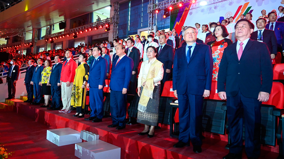 Về phía khách quốc tế có Chủ tịch Quốc hội Singapore Tan Chuan-Jin, các vị Bộ trưởng, Trưởng đoàn thể thao 11 nước tham dự SEA Games 31, Trưởng đại diện các tổ chức quốc tế và Đại sứ các nước.