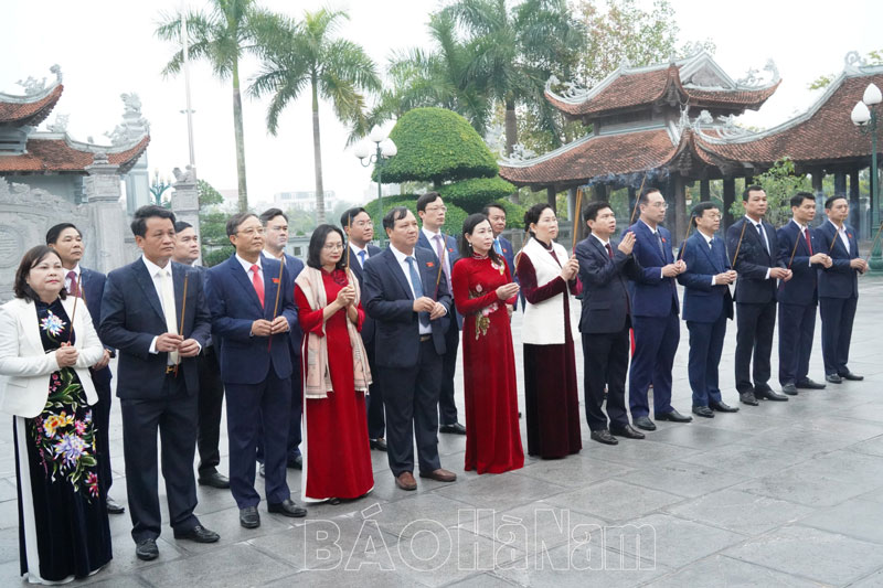 Trước khi khai mạc Kỳ họp, đầu giờ sáng, các đồng chí lãnh đạo tỉnh và các đại biểu dự Kỳ họp đã đến dâng hương, dâng hoa tại Đền thờ Chủ tịch Hồ Chí Minh và các Anh hùng Liệt sỹ tỉnh tại phường Lam Hạ, TP.Phủ Lý.