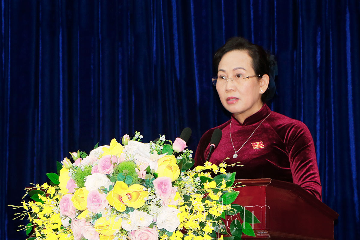 Phát biểu khai mạc kỳ họp, đồng chí Lê Thị Thủy, Ủy viên Trung ương Đảng, Bí thư Tỉnh ủy, Chủ tịch HĐND tỉnh nhấn mạnh: Kỳ họp thứ 5 HĐND tỉnh khóa XIX có ý nghĩa quan trọng, đánh giá việc thực hiện các chỉ tiêu, nhiệm vụ kế hoạch năm 2021, qua đó đề ra các chỉ tiêu, nhiệm vụ năm 2022 và những năm tiếp theo. Đặc biệt, năm 2021 cũng là năm đầu thực hiện Nghị quyết Đại hội đảng bộ tỉnh lần thứ XX và Nghị quyết Đại hội lần thứ XIII của Đảng, do đó đề nghị các vị đại biểu HĐND tỉnh cần tập trung thảo luận, đánh giá khách quan những kết quả đạt được trong việc thực hiện nhiệm vụ phát triển kinh tế - xã hội cũng như những tồn tại, hạn chế và nguyên nhân, nhất là nguyên nhân chủ quan; từ đó quyết định mục tiêu, chỉ tiêu, và đề ra các nhiệm vụ, giải pháp trọng tâm để thực hiện thắng lợi nhiệm vụ kế hoạch năm 2022; tạo tiền đề cho những năm tiếp theo.