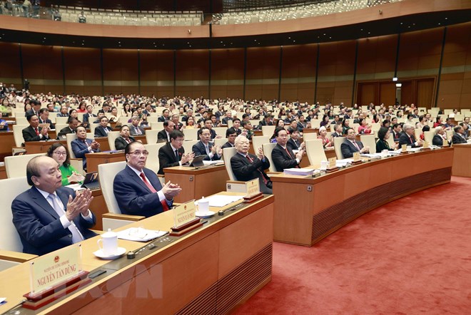 | Các vị lãnh đạo, nguyên lãnh đạo Đảng, Nhà nước và đại biểu Quốc hội dự khai mạc. |