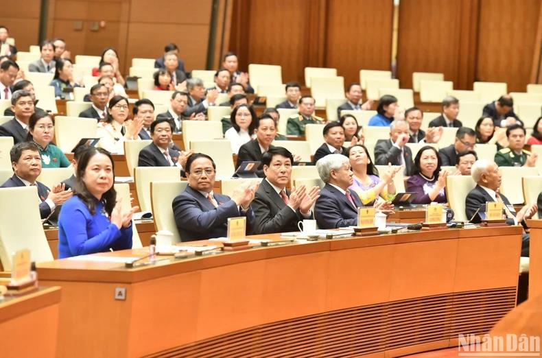 | Các đồng chí lãnh đạo Đảng, Nhà nước và các đại biểu dự phiên khai mạc Kỳ họp thứ 7, Quốc hội khóa XV. (Ảnh: LINH KHOA) |