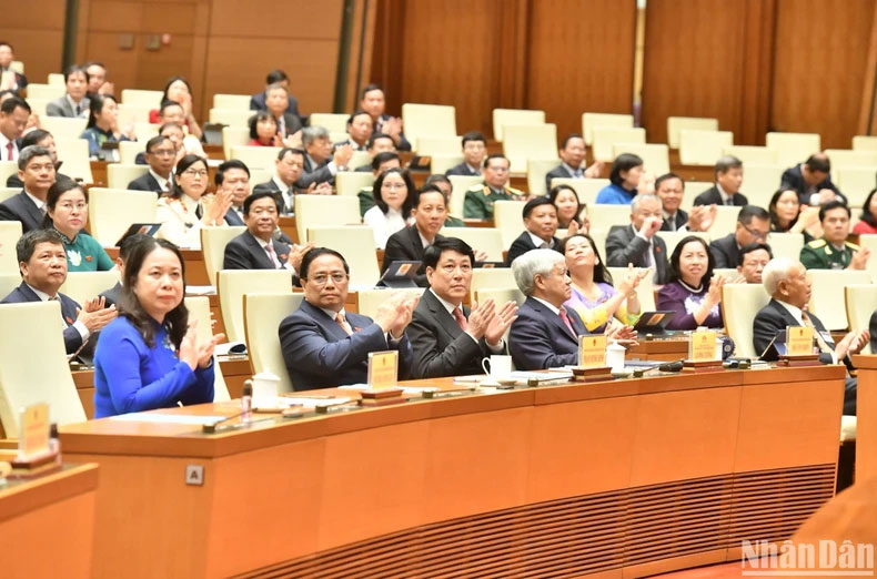 Cùng dự có các đồng chí lãnh đạo, nguyên lãnh đạo Đảng, Nhà nước, Mặt trận Tổ quốc Việt Nam, các đồng chí Ủy viên Ủy ban Thường vụ Quốc hội, các Trưởng đoàn, Phó Trưởng đoàn, các đại biểu Quốc hội thuộc 63 Đoàn đại biểu Quốc hội các tỉnh, thành phố trực thuộc Trung ương; lãnh đạo các ban, bộ, ngành, đoàn thể trung ương và lãnh đạo các địa phương, các đại sứ, đại biện, trưởng đại diện các tổ chức quốc tế tại Hà Nội.