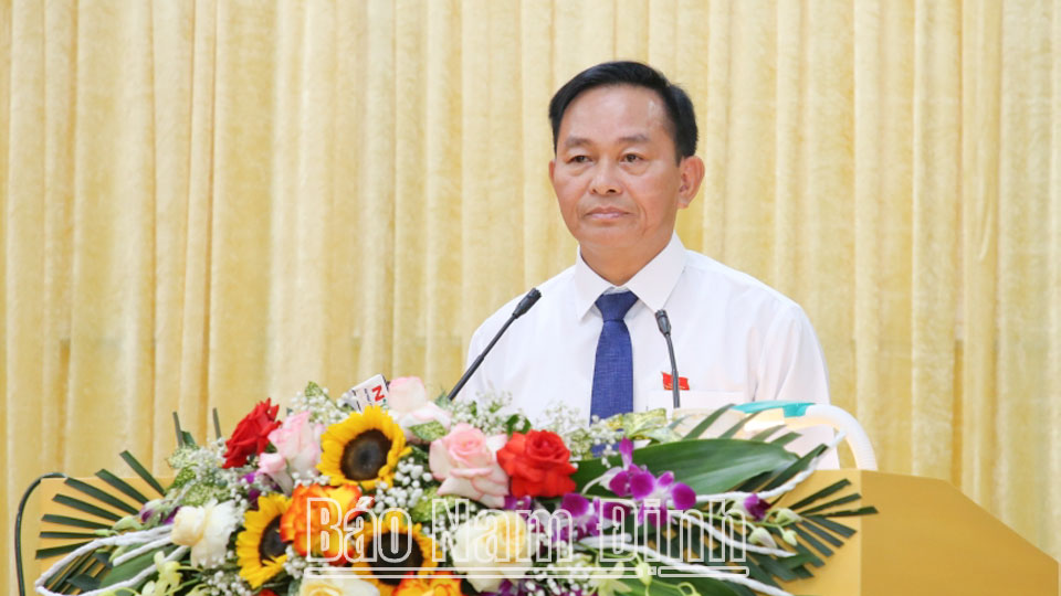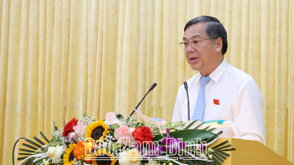 Tiếp đó, thay mặt UBND tỉnh, đồng chí Trần Lê Đoài, TUV, Phó Chủ tịch UBND tỉnh đã báo cáo tình hình thực hiện nhiệm vụ kinh tế - xã hội 6 tháng đầu năm, nhiệm vụ trọng tâm 6 tháng cuối năm 2024. Triển khai kế hoạch phát triển kinh tế - xã hội 6 tháng đầu năm 2024 trong điều kiện có nhiều khó khăn, thách thức; song dưới sự lãnh đạo thống nhất của các cấp ủy Đảng, sự chỉ đạo linh hoạt, quyết liệt của chính quyền các cấp, sự giám sát của HĐND, sự phối hợp của Ủy ban MTTQ, cùng sự nỗ lực của các sở, ngành, đoàn thể và của toàn thể nhân dân, doanh nghiệp, nên tình hình kinh tế - xã hội của tỉnh tiếp tục ổn định, có sự phát triển so với cùng kỳ và đạt được nhiều kết quả tích cực. Các chỉ tiêu kinh tế đạt mức tăng trưởng khá so với cùng kỳ, một số chỉ tiêu cao hơn bình quân chung của cả nước, như: Tổng sản phẩm GRDP ước tăng 8,56% (đứng thứ 11 toàn quốc); chỉ số sản xuất công nghiệp (IIP) ước tăng 14,29%; tổng mức lưu chuyển hàng hoá bán lẻ và dịch vụ tiêu dùng xã hội ước tăng 13,6% so với cùng kỳ; tổng giá trị hàng hóa xuất khẩu ước đạt 1.365 triệu USD, tăng 13,8%; giá trị hàng hóa nhập khẩu ước đạt 831 triệu USD, tăng 23,2% so với cùng kỳ; tổng vốn đầu tư phát triển toàn xã hội trên địa bàn tỉnh ước tăng 15,2% so với cùng kỳ. Tổ chức thành công Hội nghị công bố Quy hoạch tỉnh Nam Định thời kỳ 2021-2030, tầm nhìn đến năm 2050 và Xúc tiến đầu tư tỉnh Nam Định năm 2024. Hệ thống kết cấu hạ tầng kinh tế - xã hội tiếp tục được quan tâm đầu tư, đặc biệt là hệ thống đường giao thông, các khu, cụm công nghiệp; đồng thời tập trung chỉ đạo đôn đốc đẩy nhanh tiến độ các dự án trọng điểm. Công tác giải phóng mặt bằng được tăng cường lãnh đạo, chỉ đạo tạo sự đồng thuận và đảm bảo tiến độ triển khai các dự án trọng điểm. Sản xuất nông nghiệp phát triển ổn định, xây dựng NTM tiếp tục được đặc biệt quan tâm triển khai và đạt kết quả tích cực. Đến nay đã có 197/204 (96,6%) xã đạt chuẩn NTM nâng cao và 34 xã đạt chuẩn NTM kiểu mẫu; đã hoàn thiện hồ sơ gửi Bộ Nông nghiệp và Phát triển nông thôn thẩm định, trình Thủ tướng Chính phủ xét công nhận huyện Giao Thủy đạt chuẩn NTM nâng cao năm 2023.