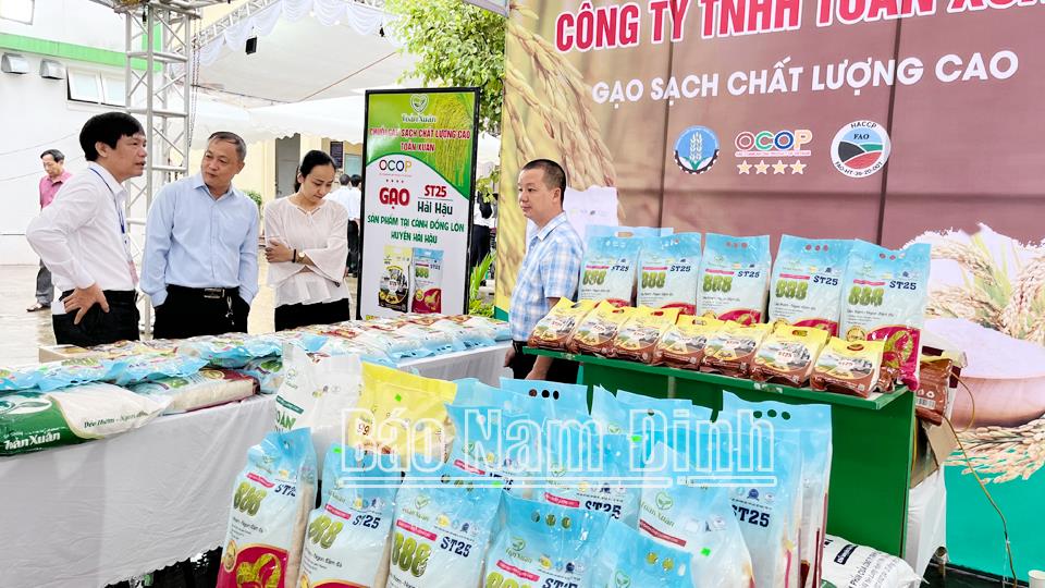 Sau 9 năm triển khai thực hiện Đề án Tái cơ cấu ngành Nông nghiệp theo hướng nâng cao giá trị gia tăng và phát triển bền vững, nhiều doanh nghiệp, hợp tác xã, cơ sở sản xuất của tỉnh đã chú trọng đầu tư công nghệ, xây dựng vùng nguyên liệu, ký hợp đồng sản xuất, chế biến ra nhiều nông sản chất lượng, có thương hiệu, giá trị gia tăng cao, sức cạnh tranh tốt trên thị trường trong và ngoài tỉnh. Tham gia Tuần lễ Giới thiệu nông sản an toàn năm nay có 35 gian hàng của các doanh nghiệp, cơ sở sản xuất, hộ cá thể với trên 250 sản phẩm nông nghiệp tiêu biểu của tỉnh và một số sản phẩm được lựa chọn của doanh nghiệp các tỉnh: Hà Nam, Ninh Bình, Thái Bình, Hải Phòng, Hưng Yên và Lào Cai. Các nông sản tiêu biểu của Nam Định bao gồm: Gạo sạch Toản Xuân, mật ong Danh Vị, gạo Quỳnh Thanh, nông sản sấy Minh Dương, ngao sạch Lenger, thủy sản Thành Vui, muối sạch Nam Định, giò 7 phút Nam Phát, thịt lợn sạch Hiền Thục, Công Danh và nhiều sản phẩm truyền thống như: Nước mắm Ninh Cơ, nước mắm Lâm Bão, Yến sào Đinh Thuận, Sừu châu Kim Thành Hoa, bánh nhãn Hải Hậu... Tại khu trưng bày, các gian hàng giới thiệu các sản phẩm OCOP, sản phẩm làng nghề truyền thống của các địa phương, được đông đảo người tiêu dùng lựa chọn tiêu thụ.