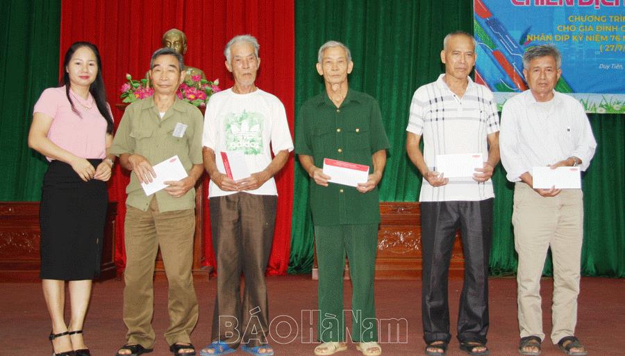 Đại diện doanh nghiệp trao quà cho các gia đình chính sách trên địa bàn phường Duy Hải ( Duy Tiên).