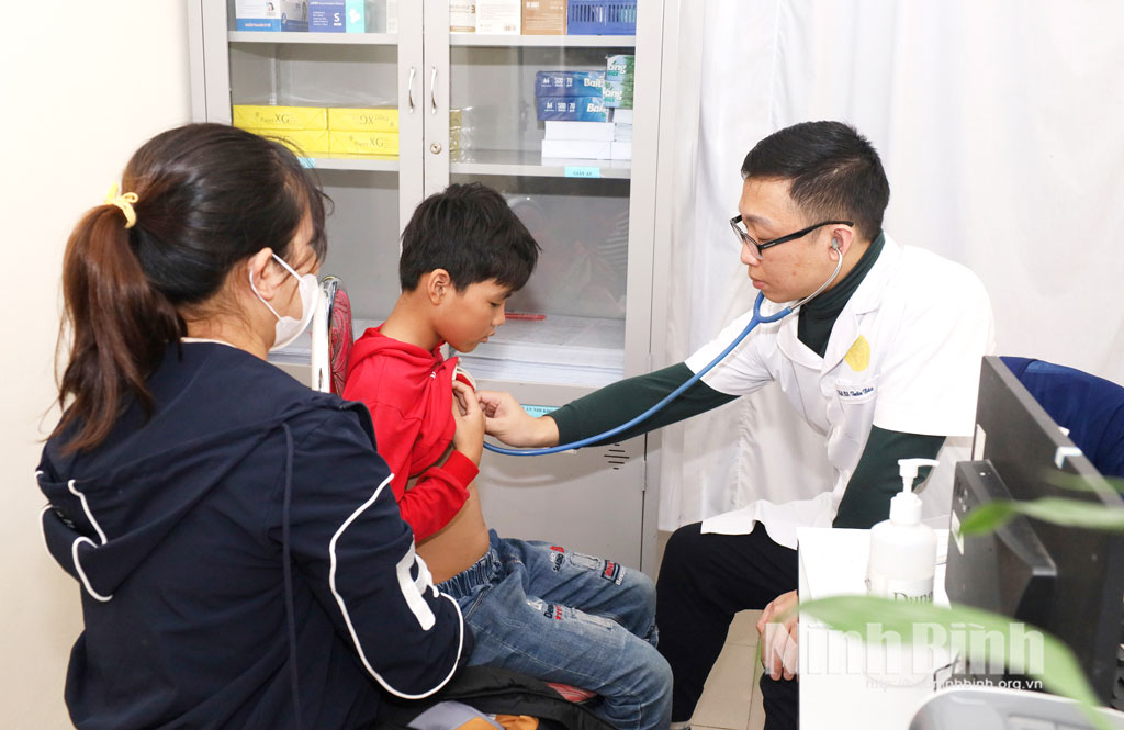 Bác sĩ thăm khám cho trẻ em tại Bệnh viện Đa khoa Hà Nam