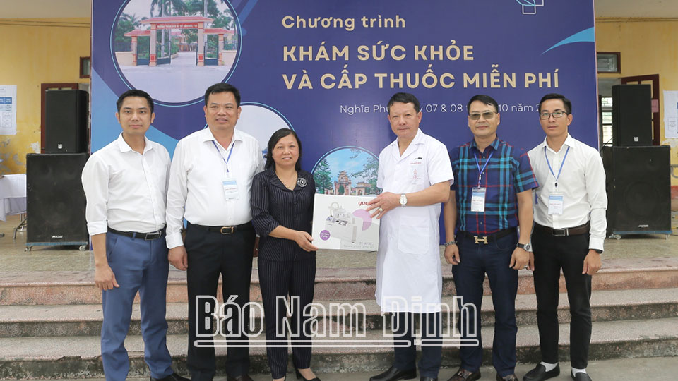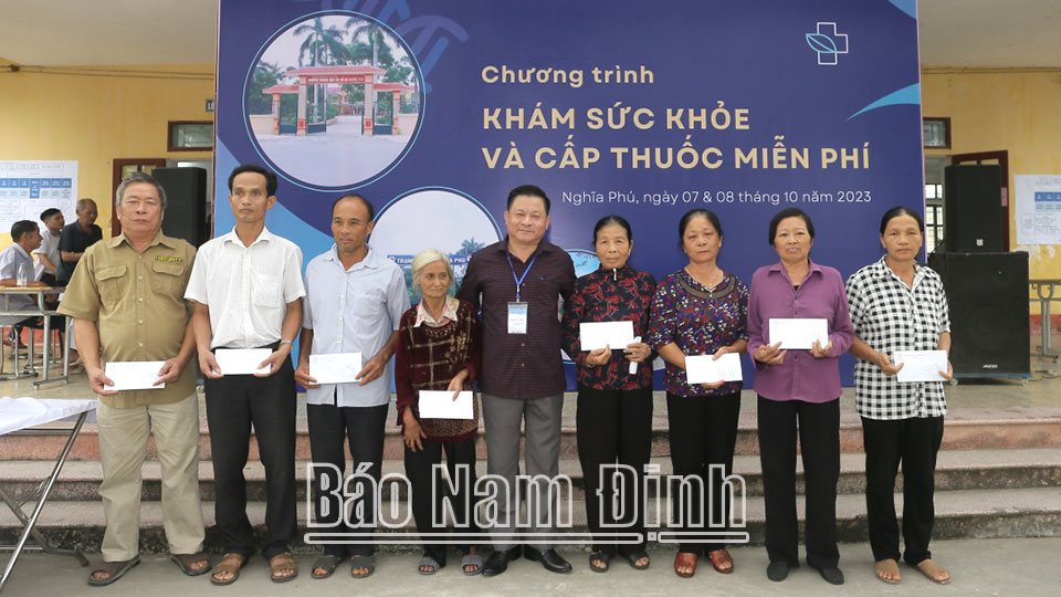 Trong 2 ngày 7 và 8-10, tại xã Nghĩa Phú (Nghĩa Hưng), Ban Liên lạc Hội đồng hương xã Nghĩa Phú tại Hà Nội, Hội Y dược huyện Nghĩa Hưng tại Hà Nội phối hợp với UBND xã Nghĩa Phú tổ chức khám bệnh và cấp thuốc miễn phí cho bà con quê hương. Đồng chí Sái Hồng Thanh, TUV, Bí thư Huyện ủy Nghĩa Hưng tới dự.