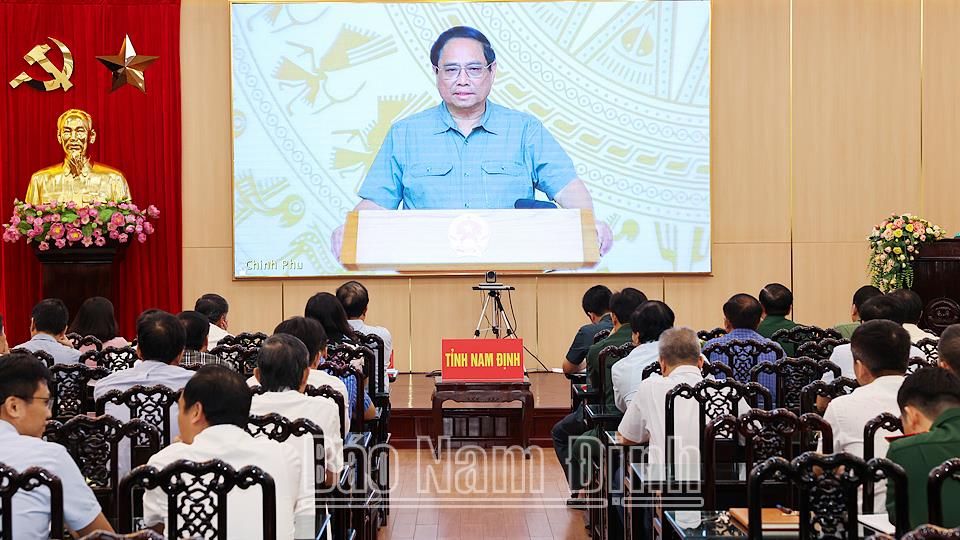 Tham dự hội nghị trực tuyến tại đầu cầu tỉnh Nam Định có các đồng chí: Phạm Gia Túc, Ủy viên BCH Trung ương Đảng, Bí thư Tỉnh ủy; Trần Anh Dũng, Ủy viên Ban TVTU, Phó Chủ tịch Thường trực UBND tỉnh; các đồng chí trong Ban TVTU; lãnh đạo UBND tỉnh; lãnh đạo các sở, ban, ngành là thành viên Ban Chỉ huy Phòng, chống thiên tai và Tìm kiếm cứu nạn (PCTT và TKCN) tỉnh.