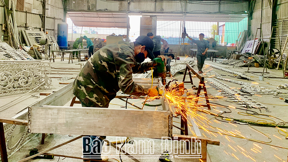 | Sản xuất sản phẩm cơ khí tại Công ty Cổ phần Tân Triệu Phát, xã Hải Vân (Hải Hậu). |