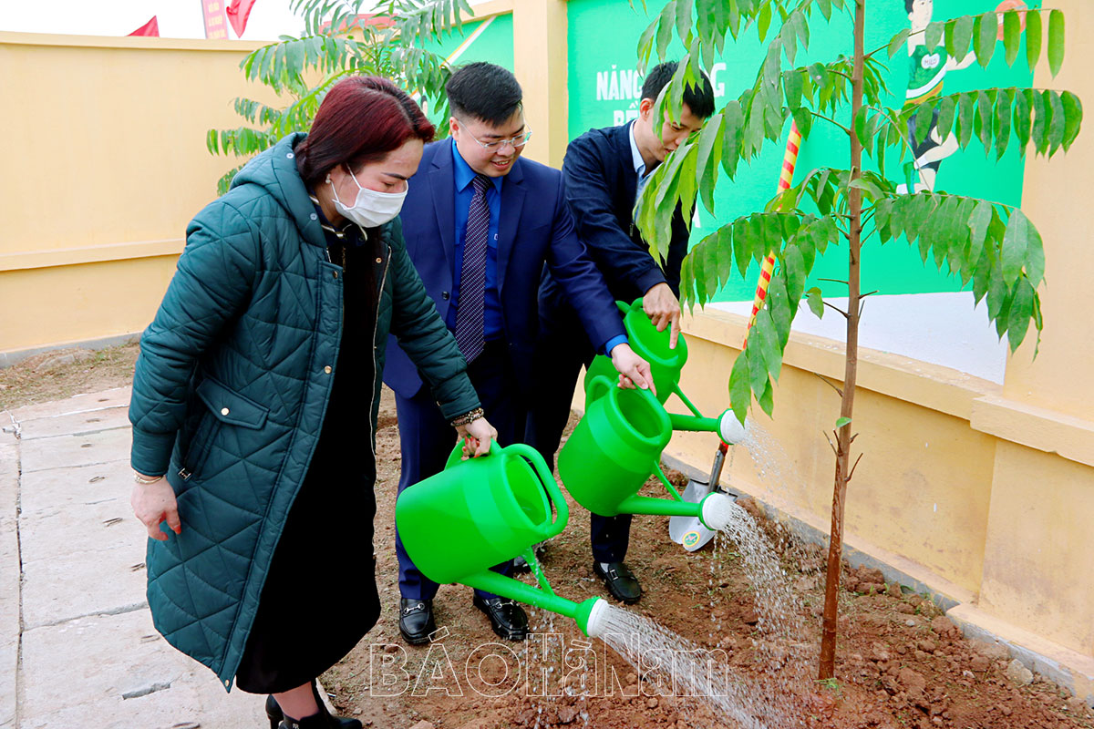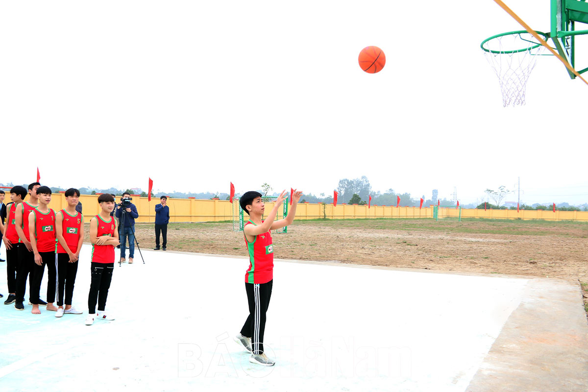 Các đơn vị tặng trang phục thể thao cho các em thiếu niên, nhi đồng xã Hợp Lý (Lý Nhân).Các đại biểu trồng cây xanh tại khuôn viên công trình.Các em thiếu niên xã Hợp Lý (Lý Nhân) luyện tập môn bóng rổ.