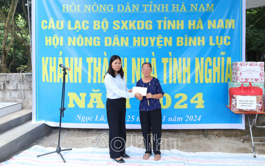 Tại buổi khánh thành và bàn giao nhà, HND tỉnh, CLB nông dân sản xuất, kinh doanh giỏi Bình Lục, cùng ban, ngành, đoàn thể địa phương đã trao tặng bà Trần Thị Đề nhiều phần quà thiết thực. Đây là hoạt động có ý nghĩa nhân văn sâu sắc, thể hiện sự chung tay vì người nghèo của các cấp HND.