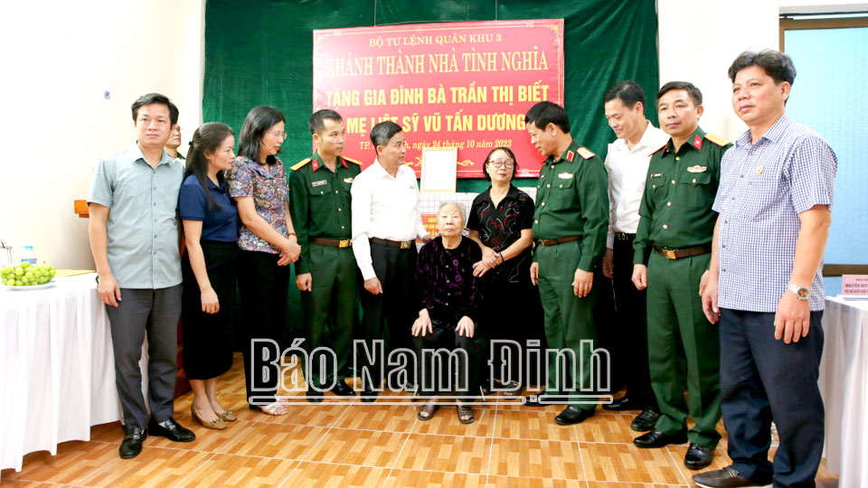 Sáng 24-10, Bộ Tư lệnh Quân khu 3 tổ chức khánh thành và bàn giao nhà tình nghĩa cho bà Trần Thị Biết là mẹ liệt sĩ Vũ Tấn Dương ở số nhà 19/15, đường Trần Huy Liệu, tổ dân phố số 1, phường Năng Tĩnh (thành phố Nam Định). Thiếu tướng Nguyễn Huy Hoàng, Phó Chủ nhiệm Chính trị Quân khu 3; lãnh đạo Bộ CHQS tỉnh, Thành ủy, HĐND, UBND và các ban, ngành, đoàn thể thành phố Nam Định tới dự.
