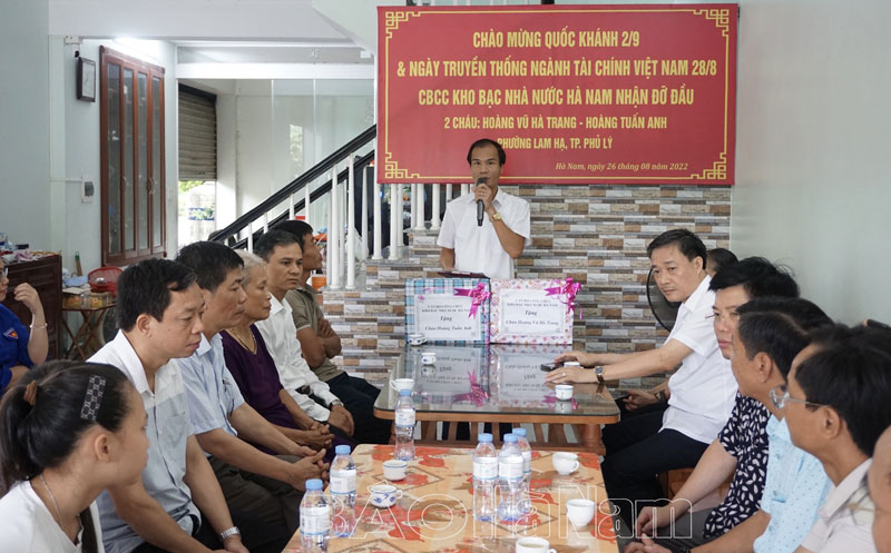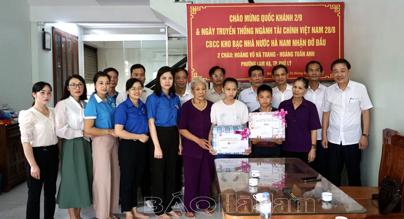 Nhân dịp Quốc khánh 2/9 và chào mừng kỷ niệm 77 năm ngày Truyền thống ngành Tài chính Việt Nam, sáng 26/8, Kho bạc Nhà nước tỉnh phối hợp với chính quyền địa phương đã tới tặng quà hai cháu có hoàn cảnh khó khăn tại tổ dân phố Hòa Lạc, phường Lam Hạ (TP Phủ Lý).