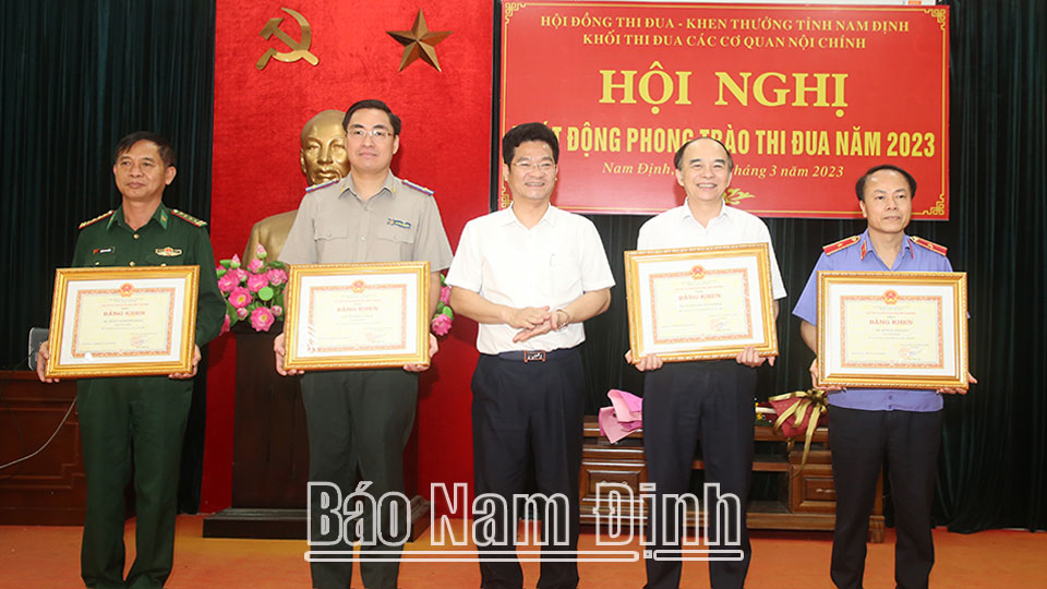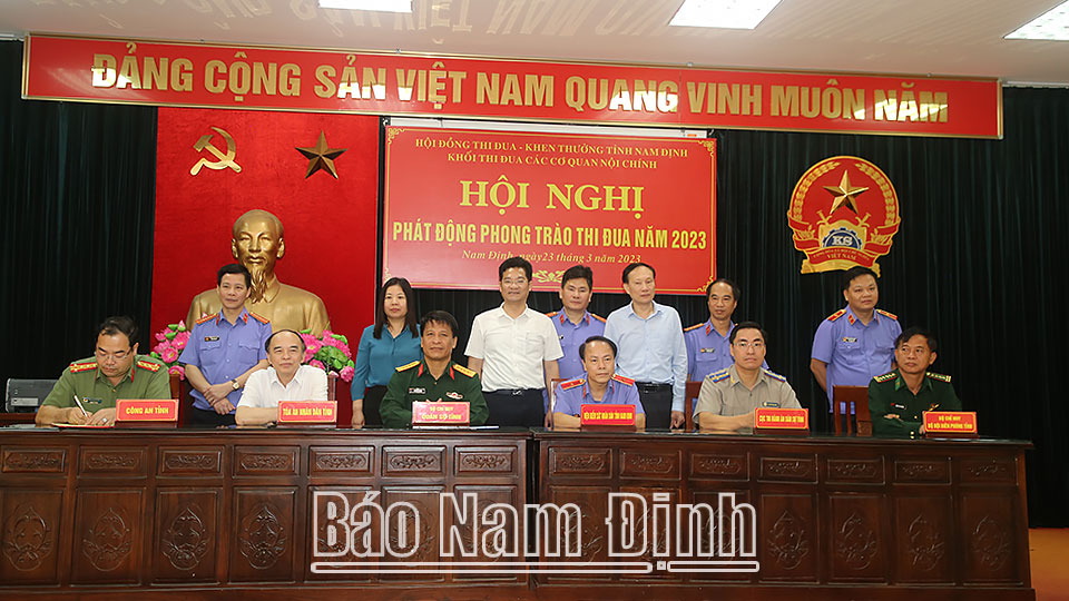 Năm 2023, Khối thi đua các cơ quan Nội chính tỉnh gồm: Viện Kiểm sát nhân dân tỉnh , Bộ CHQS tỉnh, Công an tỉnh, Bộ Chỉ huy BĐBP tỉnh, Tòa án nhân dân tỉnh, Cục Thi hành án dân sự tỉnh đã phát động phong trào thi đua với chủ đề “Đoàn kết, vượt khó - Chủ động thích ứng - Điều hành linh hoạt - Đổi mới, sáng tạo - Kịp thời, hiệu quả”, tập trung vào các nội dung trọng tâm: Tiếp tục tổ chức triển khai và thực hiện có hiệu quả các phong trào thi đua do Trung ương, UBND tỉnh phát động, như: “Đẩy mạnh cải cách hành chính tỉnh Nam Định giai đoạn 2021-2025” gắn với thực hiện phong trào “Cán bộ, công chức, viên chức tỉnh Nam Định thi đua thực hiện văn hóa công sở” giai đoạn 2019-2025...; tích cực hưởng ứng phong trào thi đua “Đẩy nhanh tiến độ giải phóng mặt bằng, hoàn thành sớm các công trình, dự án trọng điểm trên địa bàn tỉnh” và các đợt thi đua đặc biệt hướng tới các hoạt động kỷ niệm các ngày lễ lớn, sự kiện chính trị của đất nước, của tỉnh như: Kỷ niệm 60 năm ngày Bác Hồ về thăm Đảng bộ và nhân dân tỉnh Nam Định (21-5-1963 – 21-5-2023), 75 năm ngày Chủ tịch Hồ Chí Minh ra Lời kêu gọi thi đua ái quốc (11-6-1948 – 11-6-2023)... và các phong trào thi đua trong từng cơ quan của Khối, tạo sức mạnh tổng hợp, phấn đấu hoàn thành xuất sắc nhiệm vụ. Đồng thời đổi mới công tác, quản lý, chỉ đạo, điều hành; nâng cao trách nhiệm người đứng đầu cơ quan, đơn vị trong công tác thi đua, khen thưởng. Nâng cao chất lượng công tác thi đua, khen thưởng; đảm bảo việc khen thưởng kịp thời, chính xác công khai, công bằng, có tác dụng động viên, giáo dục và nêu gương. Tích cực đẩy mạnh công tác tuyên truyền, biểu dương các gương điển hình tiên tiến, các nhân tố mới trong các phong trào thi đua nhằm tạo sự lan tỏa trong cộng đồng, xã hội.