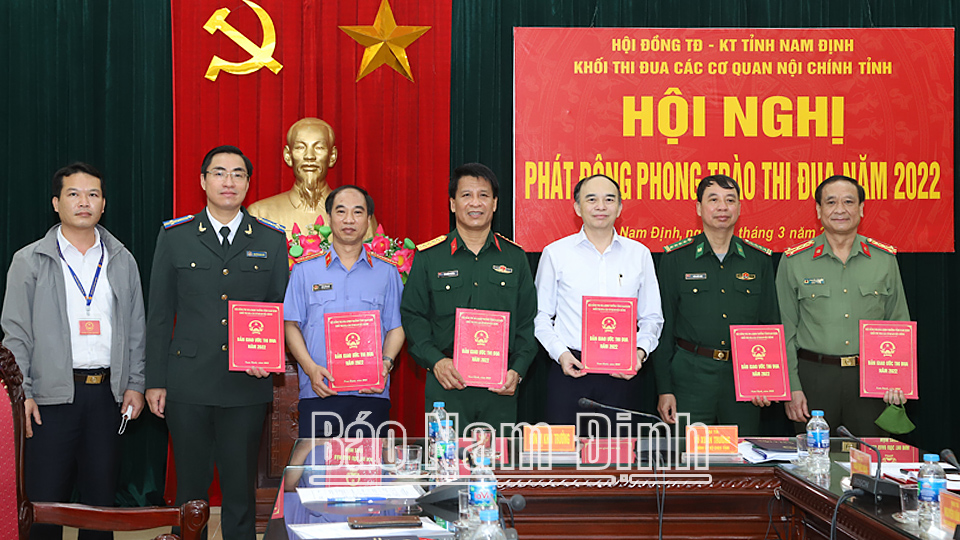 Năm 2021, hưởng ứng phong trào thi đua với chủ đề: “Đoàn kết, sáng tạo, kỷ cương, đổi mới, phát huy sức mạnh tổng hợp của cả hệ thống chính trị, thi đua phát triển kinh tế nhanh và bền vững, xây dựng tỉnh Nam Định giàu đẹp, văn minh”, Khối các cơ quan Nội chính tỉnh đã nêu cao tinh thần đoàn kết, khắc phục khó khăn, phát huy tính chủ động, sáng tạo thi đua thực hiện thắng lợi các nhiệm vụ chính trị, góp phần hoàn thành các mục tiêu phát triển kinh tế - xã hội, củng cố quốc phòng - an ninh của tỉnh. Nhiều nhiệm vụ hoàn thành xuất sắc, trong đó các cơ quan đã phối hợp tham mưu cho Tỉnh ủy, HĐND, UBND tỉnh chỉ đạo, tổ chức thành công Cuộc diễn tập khu vực phòng thủ tỉnh, huyện Trực Ninh, thành phố Nam Định năm 2021; diễn tập phòng thủ dân sự ứng phó với siêu bão và tìm kiếm cứu nạn; diễn tập phòng, chống COVID-19 tại các khu công nghiệp tỉnh. Thực hiện quyết liệt, hiệu quả đấu tranh, phòng ngừa các loại tội phạm giữ vững ổn định chính trị, đảm bảo trật tự an toàn xã hội, tội phạm và vi phạm pháp luật về trật tự an toàn xã hội giảm 12,5%; bảo đảm tuyệt đối an toàn Cuộc bầu cử đại biểu Quốc hội khóa XV và bầu cử HĐND các cấp, nhiệm kỳ 2021-2026. Thực hiện tốt nhiệm vụ quản lý, bảo vệ chủ quyền an ninh khu vực biên giới biển. Việc điều tra các vụ án hình sự đạt 98%, việc xét xử các vụ án hình sự đạt 100%; công tác giải quyết và kiểm sát giải quyết khiếu nại tố cáo trong hoạt động tư pháp đạt tỷ lệ 100%. Bảo đảm thực hiện đúng các quy định của pháp luật trong hoạt động thi hành án dân sự, trong đó đã thi hành xong 5.135 việc/5.965 việc, đạt tỉ lệ 86,09% vượt 3,09% chỉ tiêu được giao. Tòa án nhân dân tỉnh đã giải quyết và xét xử 419/427 vụ, việc, đạt 97,89%. Với những thành tích, kết quả đạt được trong năm 2021, Bộ CHQS tỉnh, Viện Kiểm sát nhân dân tỉnh được UBND tỉnh tặng danh hiệu Cờ thi đua Đơn vị dẫn đầu phong trào thi đua, 4 đơn vị còn lại được UBND tỉnh tặng Bằng khen.