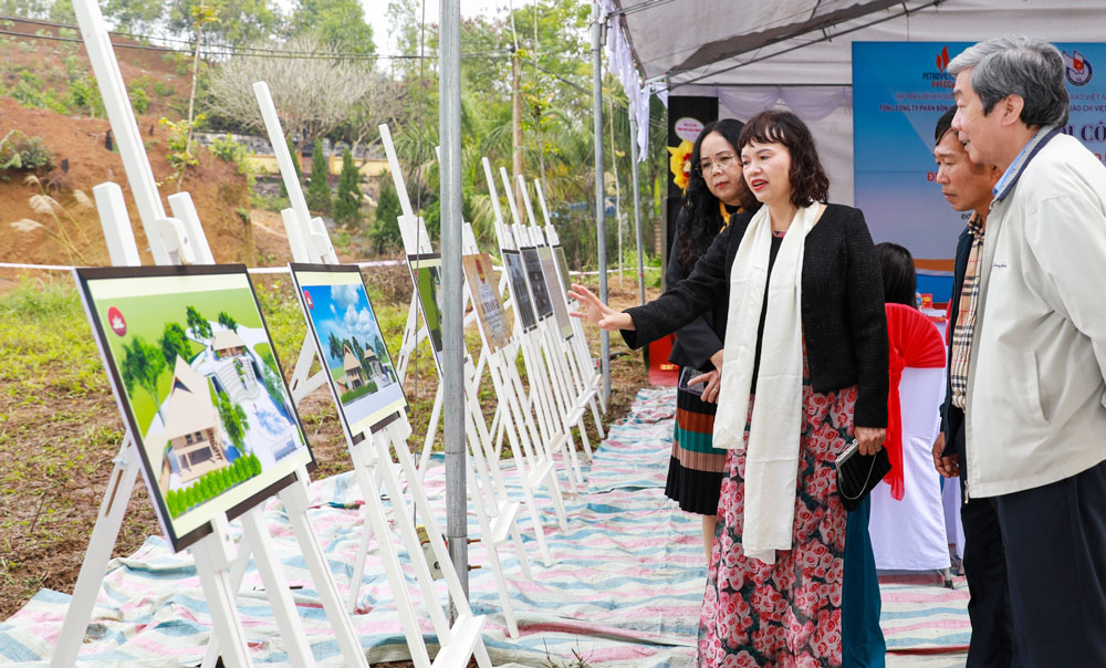 | Các đại biểu nghe giới thiệu về phối cảnh công trình tu bổ, tôn tạo Di tích lịch sử Quốc gia Địa điểm Trường dạy làm báo Huỳnh Thúc Kháng. |