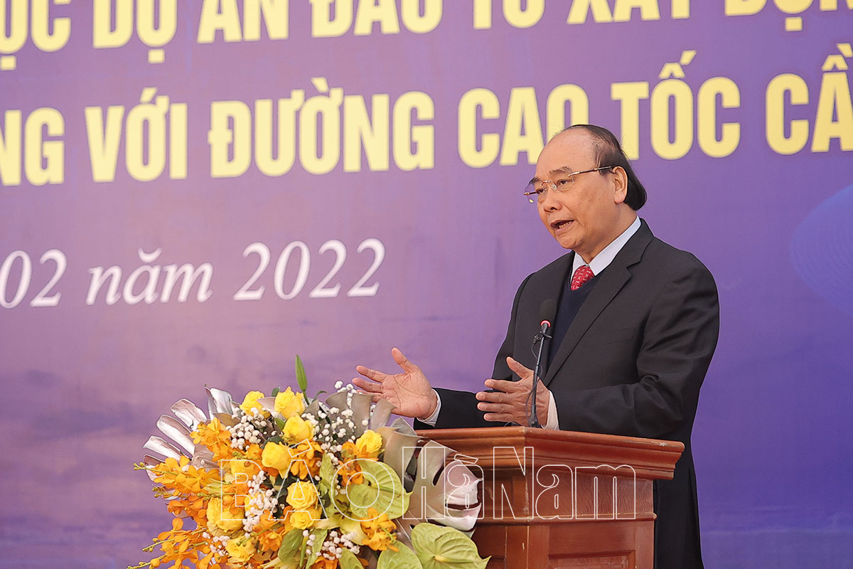 Chào mừng kỷ niệm 92 năm thành lập Đảng Cộng sản Việt Nam, kỷ niệm 25 năm tái lập tỉnh Hà Nam và đón xuân Nhâm Dần 2022, sáng ngày 7/2, UBND tỉnh Hà Nam phối hợp với Bộ Giao thông Vận tải long trọng tổ chức lễ khởi công xây dựng công trình thuộc Dự án thành phần II (giai đoạn 2) Dự án xây dựng tuyến đường bộ nối đường cao tốc Hà Nội - Hải Phòng với đường cao tốc Cầu Giẽ - Ninh Bình. Đồng chí Nguyễn Xuân Phúc, Ủy viên Bộ Chính trị, Chủ tịch nước đã tới dự và động thổ dự án.