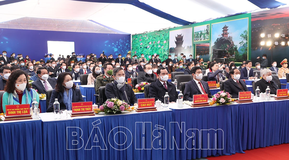 Thay mặt Tỉnh ủy, UBND tỉnh, đồng chí Trương Quốc Huy, Phó Bí thư Tỉnh ủy, Chủ tịch UBND tỉnh, Trưởng đoàn Đại biểu Quốc hội tỉnh đã phát biểu cảm ơn Chủ tịch nước, lãnh đạo các Bộ, ban, ngành của Trung ương đã quan tâm đến tỉnh Hà Nam trong suốt thời gian qua. Việc các đồng chí lãnh đạo Đảng, Nhà nước về trực tiếp động thổ dự án nhân dịp đầu Xuân Nhâm Dần là nguồn động viên to lớn để Đảng bộ, chính quyền và nhân dân tỉnh Hà Nam phấn đấu hoàn thành thắng lợi nhiệm vụ phát triển kinh tế - xã hội trong năm 2022.