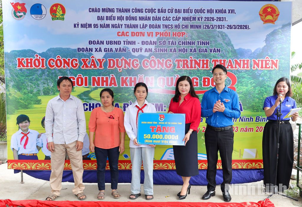 Chiều 23/3, Đoàn Thanh niên UBND tỉnh, Đoàn Thanh niên Sở Tài chính, Ban Quản lý Quỹ An sinh xã hội và Đoàn Thanh niên xã Gia Vân phối hợp tổ chức Lễ khởi công xây dựng công trình thanh niên “Ngôi nhà Khăn quàng đỏ” tặng em Trần Thanh Hà, đội viên có hoàn cảnh khó khăn trên địa bàn xã Gia Vân.