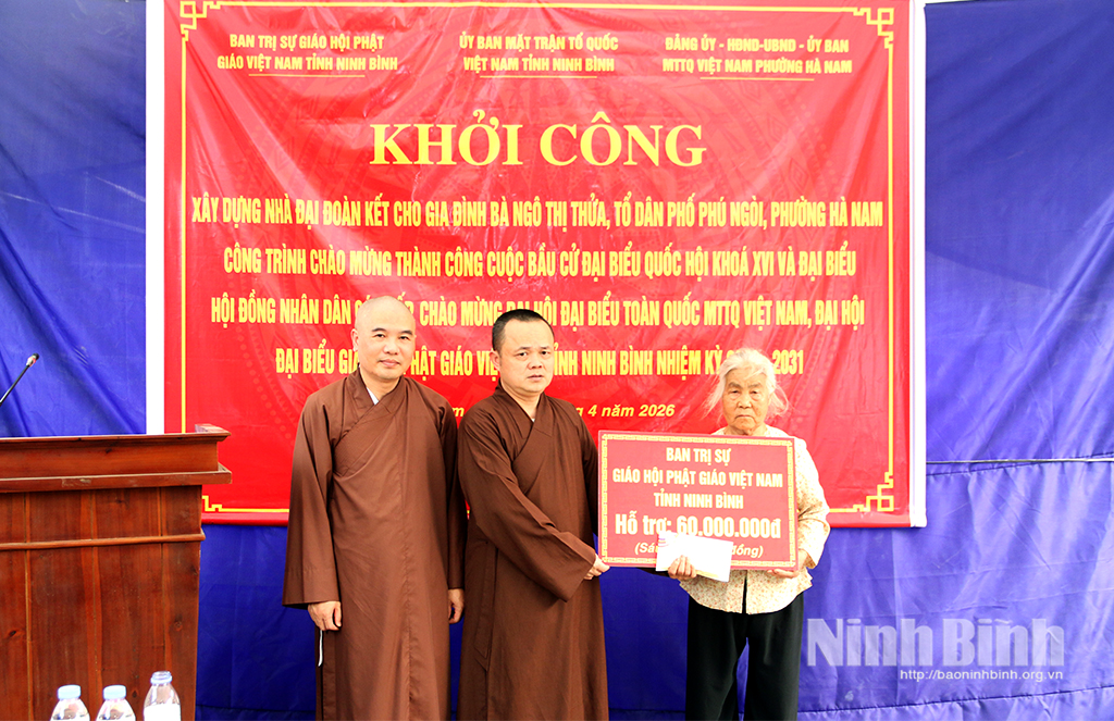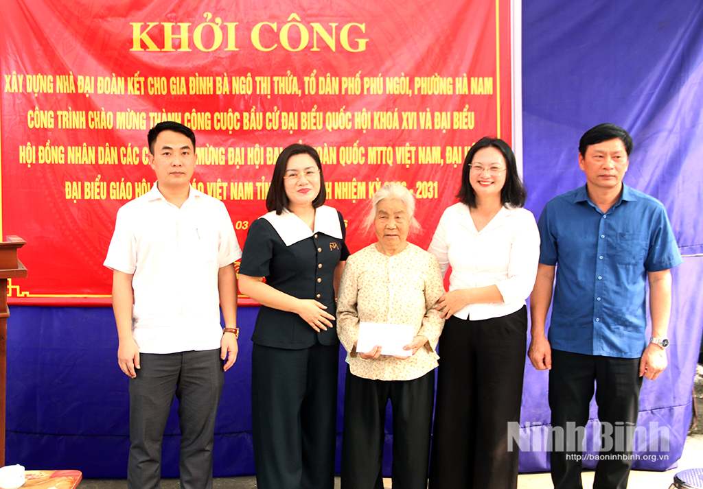 Ngôi nhà “Đại đoàn kết” của gia đình bà Thửa là 1 trong 3 công trình được khởi công nhằm chào mừng thành công cuộc bầu cử đại biểu Quốc hội khóa XVI và đại biểu HĐND các cấp nhiệm kỳ 2026-2031; hướng tới Đại hội đại biểu toàn quốc MTTQ Việt Nam lần thứ XI và Đại hội Giáo hội Phật giáo Việt Nam tỉnh Ninh Bình lần thứ I.