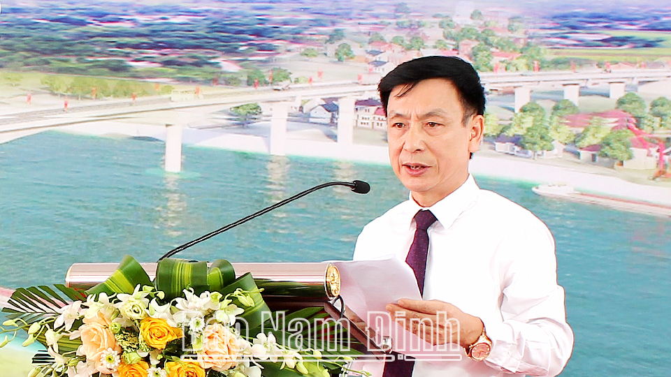 | Đồng chí Chủ tịch UBND tỉnh phát biểu tại lễ khởi công dự án xây dựng đường trục phát triển nối vùng kinh tế biển tỉnh Nam Định với đường cao tốc Cầu Giẽ-Ninh Bình giai đoạn II. |