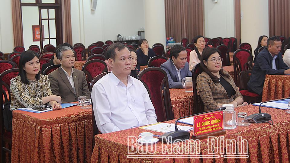 Dự hội nghị tại điểm cầu tỉnh Nam Định có các đồng chí: Lê Quốc Chỉnh, Phó Bí thư Thường trực Tỉnh ủy, Chủ tịch HĐND tỉnh, Trưởng đoàn Đoàn Đại biểu Quốc hội tỉnh; Hà Lan Anh, TUV, Phó Chủ tịch UBND tỉnh, Trưởng Ban Vì sự tiến bộ phụ nữ tỉnh; đại diện lãnh đạo các sở, ban, ngành của tỉnh.